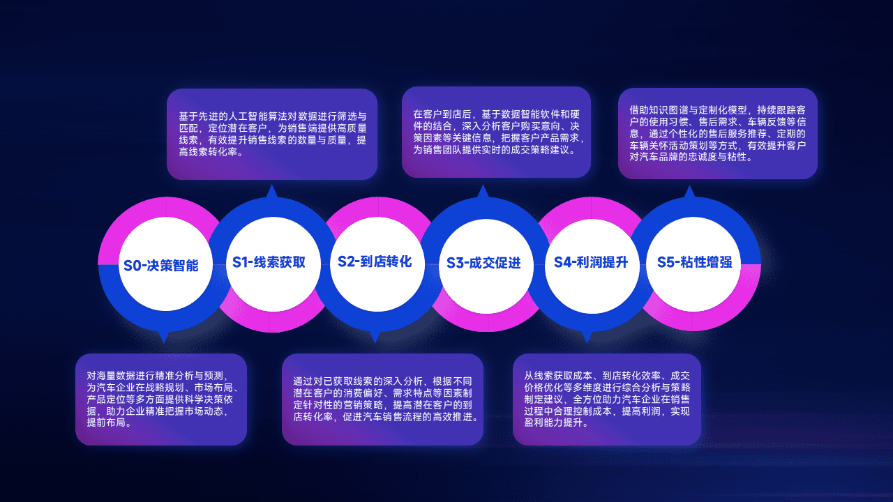 通过拓宽潜在客户来源、、优化线索分配并提高到店转化率,,,,以增强销售效率。。。。同时,,利用线索数据不断优化分析模型,,,有效提升转化率,,,扩大营销影响力。。。